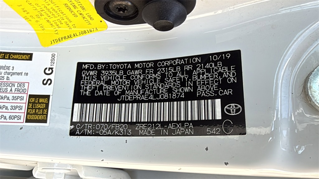 White 2020 Toyota Corolla LE FWD CVT 1.8L I4 DOHC 16V 30/38 City/Highway MPG
